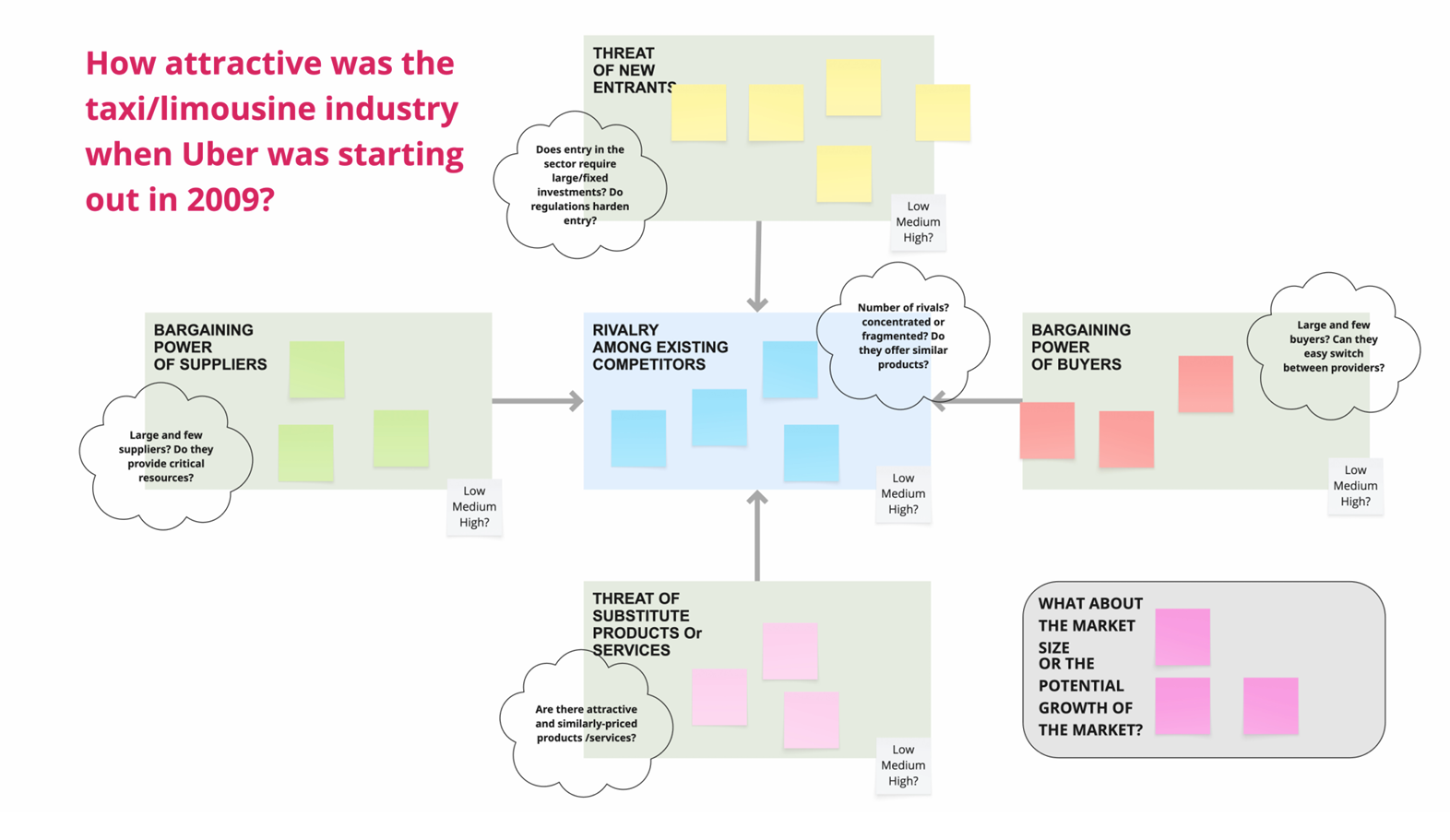 - Threat of New Entrants: Does entry in the sector require large/fixed investments? Do regulations harden entry?